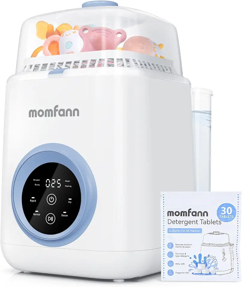 MOMFANN’s Detergent Tablets (0.2 lbs, 150-packs) are hypoallergenic, residue-free for bottle washers/sterilizers. Dissolve in water, safe for baby skin, pregnancy. For all brands. 1-year warranty.